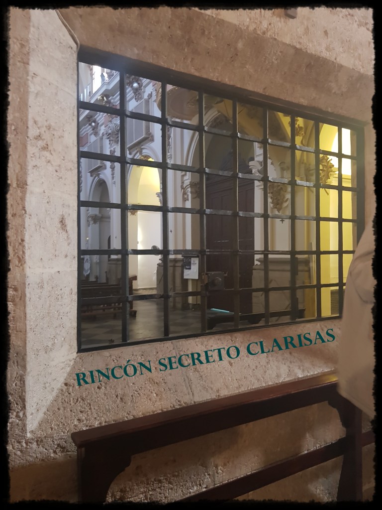 Otra de las zonas que nos encantó fue la iglesia ¡en especial a Judith! y no sólo por la estructura y belleza de las cristaleras, sino porque guardaba rincones secretos donde las habitantes de este monasterio podían seguir una misa e incluso, cantar en el coro. Ellas permanecían alejadas en un balcón del resto de feligreses, pero no era un simple balcón sino que la orden de las clarisas lo utilizaba como confesionario y lugar de culto ya que allí mismo guardaba reposo la Reina María.