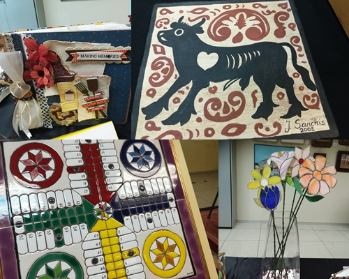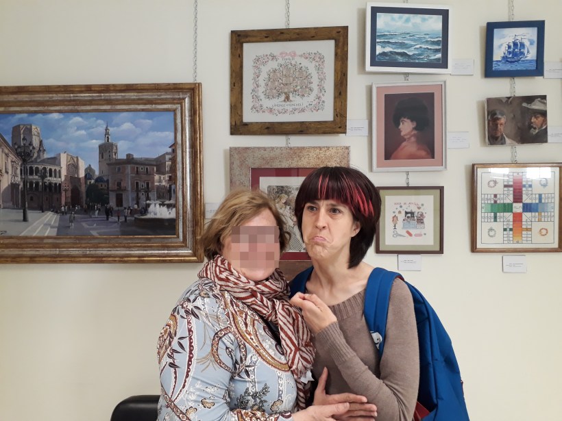 Era una exposición de lo más variada y tuvimos la suerte de encontrarnos con los artistas voluntarios que habían elaborado muchas de las obras que vimos expuestas en la Asociación.