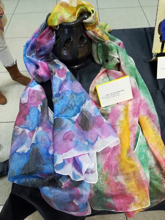Entre otras muchas cosas había pañuelos de seda pintados a mano, elaborados por una de las socias de AGMT que nos explicó que se trataba de una pintura especial para telas.