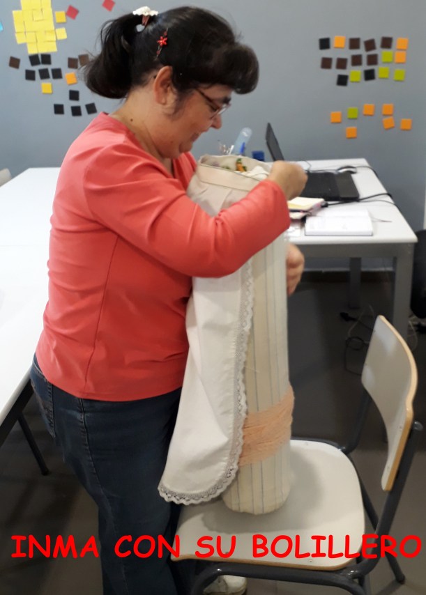Ella es la experta en bolillos, tanto es así que trabaja como profesora de encaje de bolillos en varios centros de mayores de Valencia, donde imparte sus talleres. Normalmente la podéis encontrar en la zona de Viveros y Giorgeta.