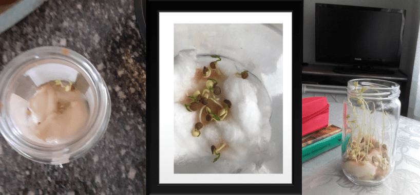 Algunos hemos usado lentejas, otros garbanzos y otros alubias, lo importante es que todos estamos pendientes del proceso de germinación de nuestras semillas.