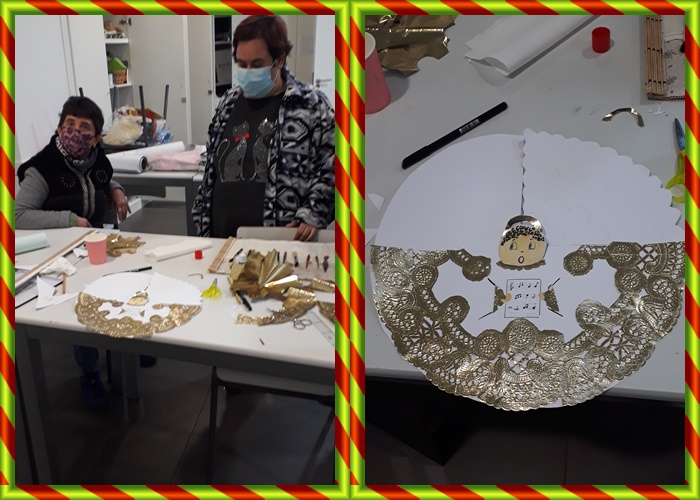 Con una cartulina, una blonda dorada de tarta y un poquito de destreza podéis conseguir un angelito para colgar en la cúspide del árbol.