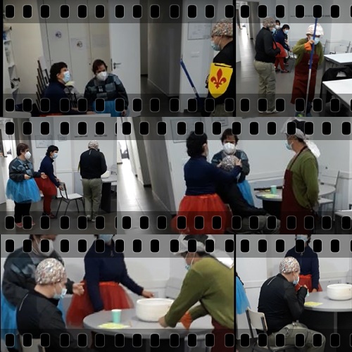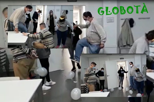 Incluso, acercándose las 2 de la tarde, montamos una mini-mascletà, que podríamos llamarla más bien“Globotà”.Todo el mundo quiso participar: chicos y chicas de A.F.I.M., monitores, alumnas de prácticas, delegada…no faltó ni el apuntador!!!
