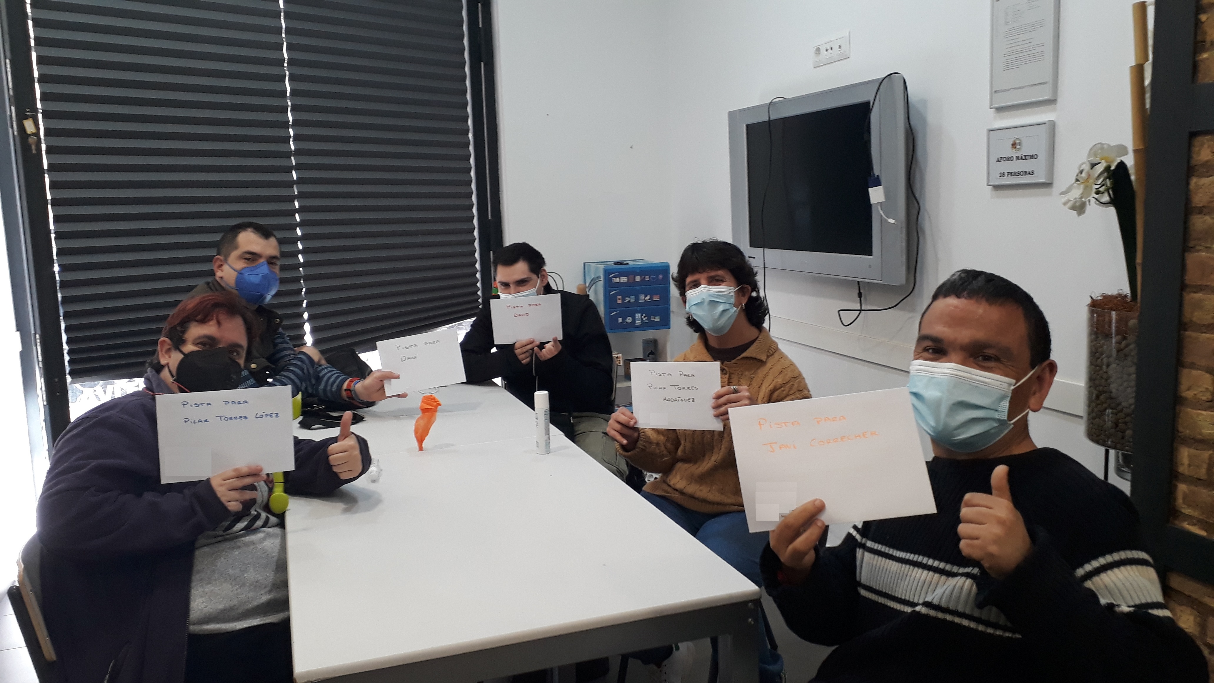 Cada uno de los participantes ha ido leyendo sus pistas y descubriendo en qué lugar del centro se escondía su libro.